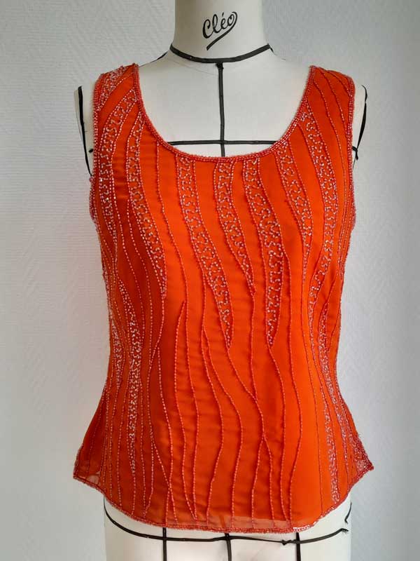 Taille 36-38 - Travail du décolleté, dos et devant retravaillé, reperlage, amélioration des finitions intérieures